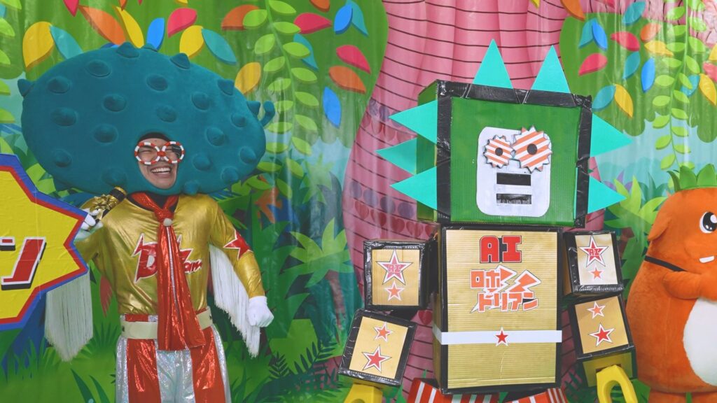 ドリアンどんが胸を張って紹介するロボは、リズムに合わせて軽快にダンス!
